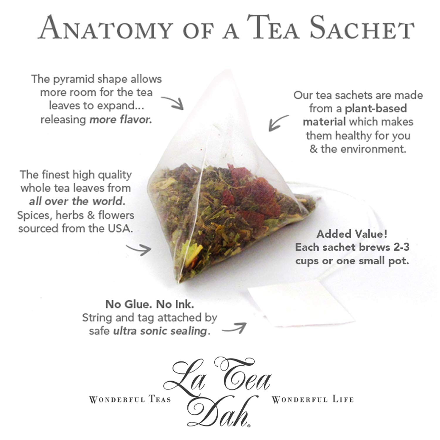 TOTALLY NATURAL: Biodegradable pyramid tea bags handle the purity and flavor of our tea. Our teas are healthy to drink and kind to the environment. The bags are made of plant starch including the string and tag attached by ultrasonic sealing and not glue.