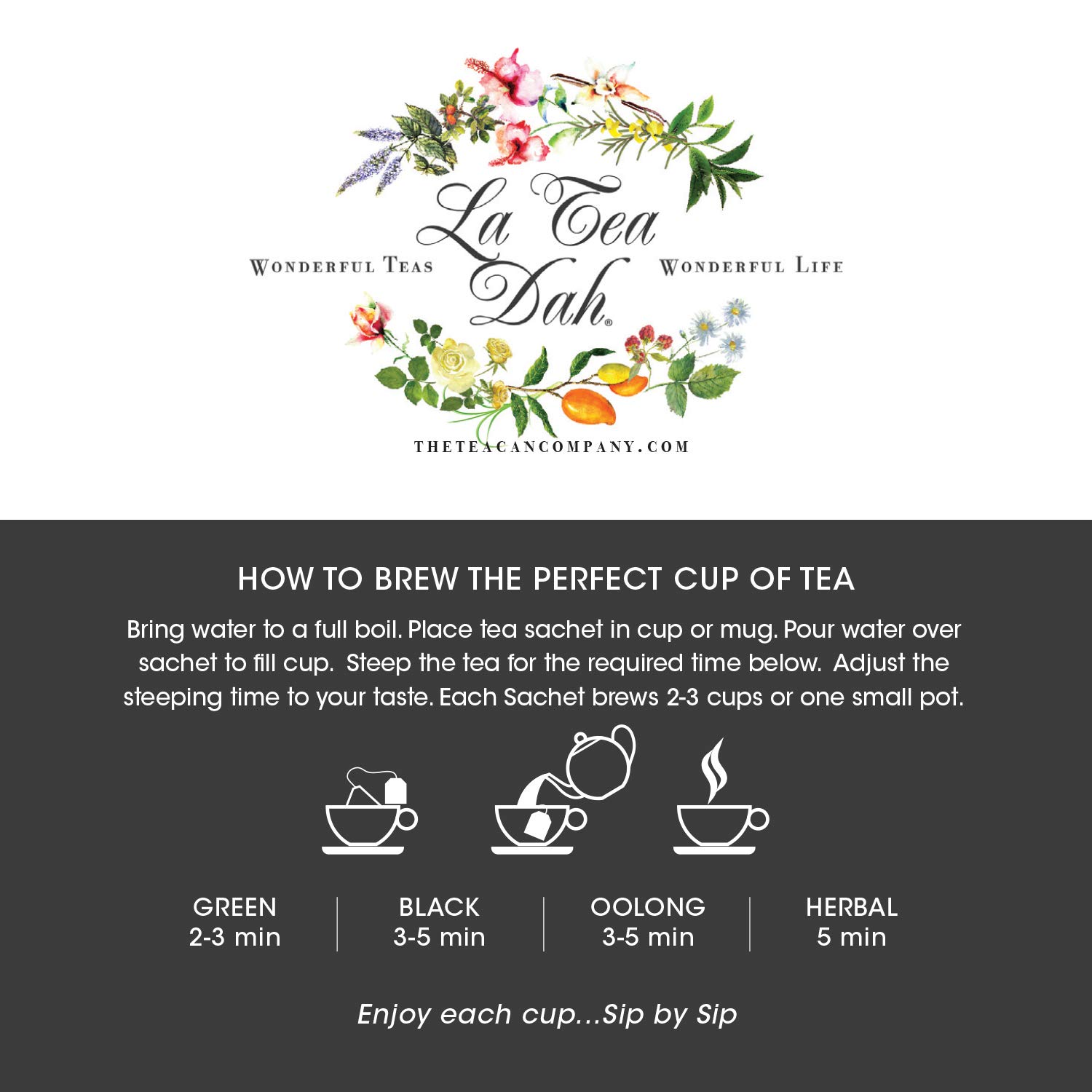 PREMIUM TEA, AWESOME VALUE: Gather your friends around a pot of relaxing, calming or energizing tea. Only 2 tea bags brew an entire pot. One tea bag lasts all day. One sachet brews 2 to 3 cups of tea.