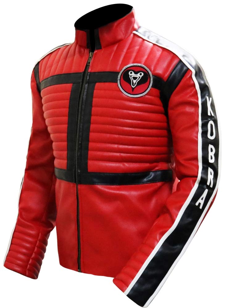 Two Inner Pockets, Stand-Up Collar, Red Color, Full Sleeves – Zipper Cuff, Design: Symbol Of Kid Kobra Is Embossed On Front and Sleeves, Padded Chest and Back Shoulder