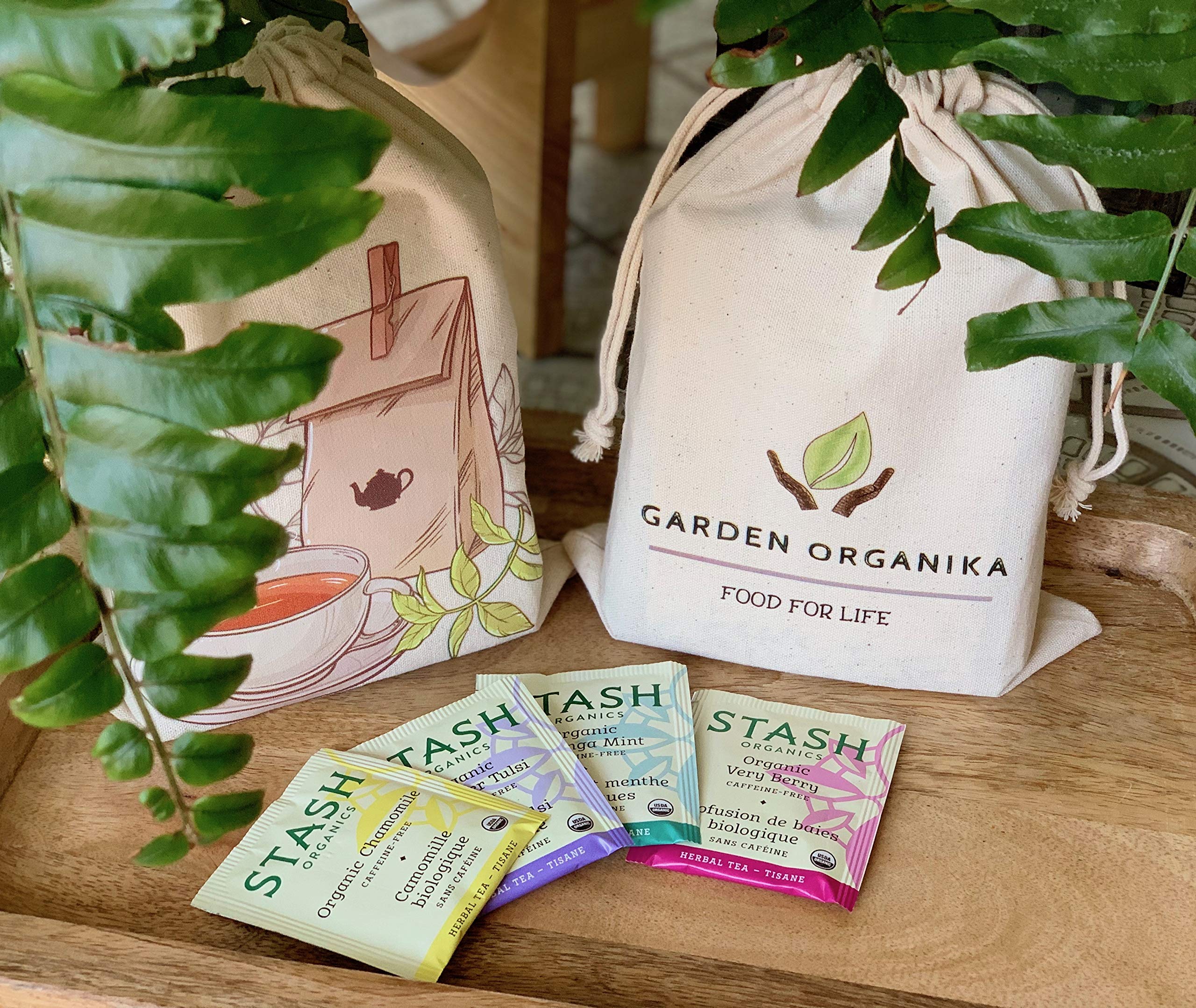 Organic Tea Sampler (50 Count) in Reusable Drawstring Cotton Tea Bag by Garden Organika