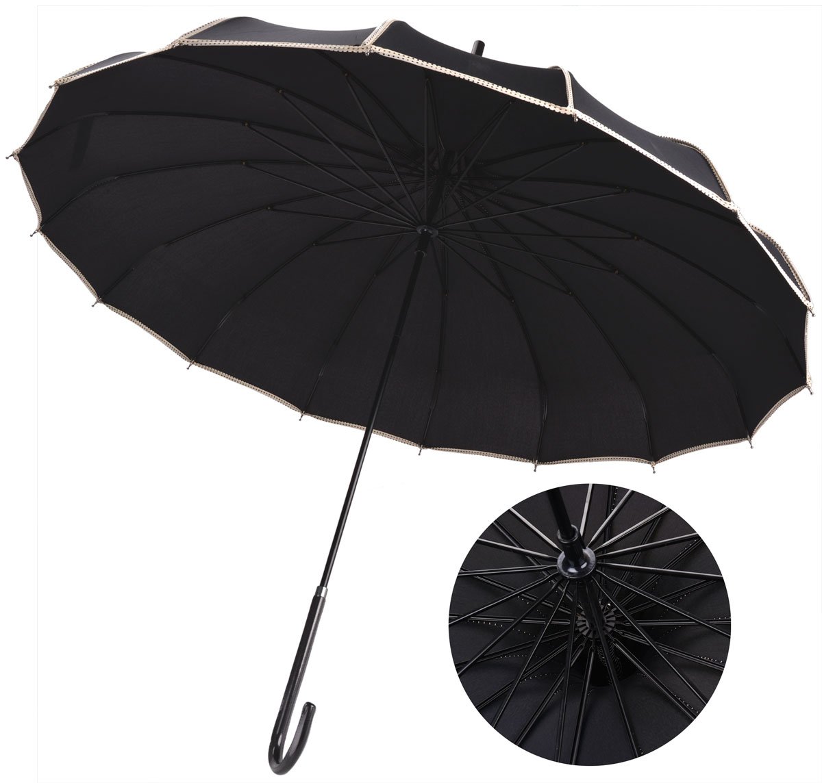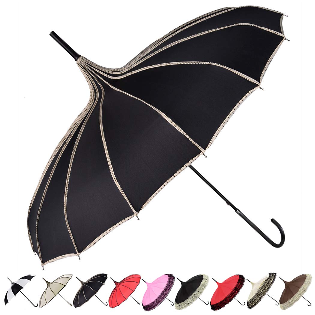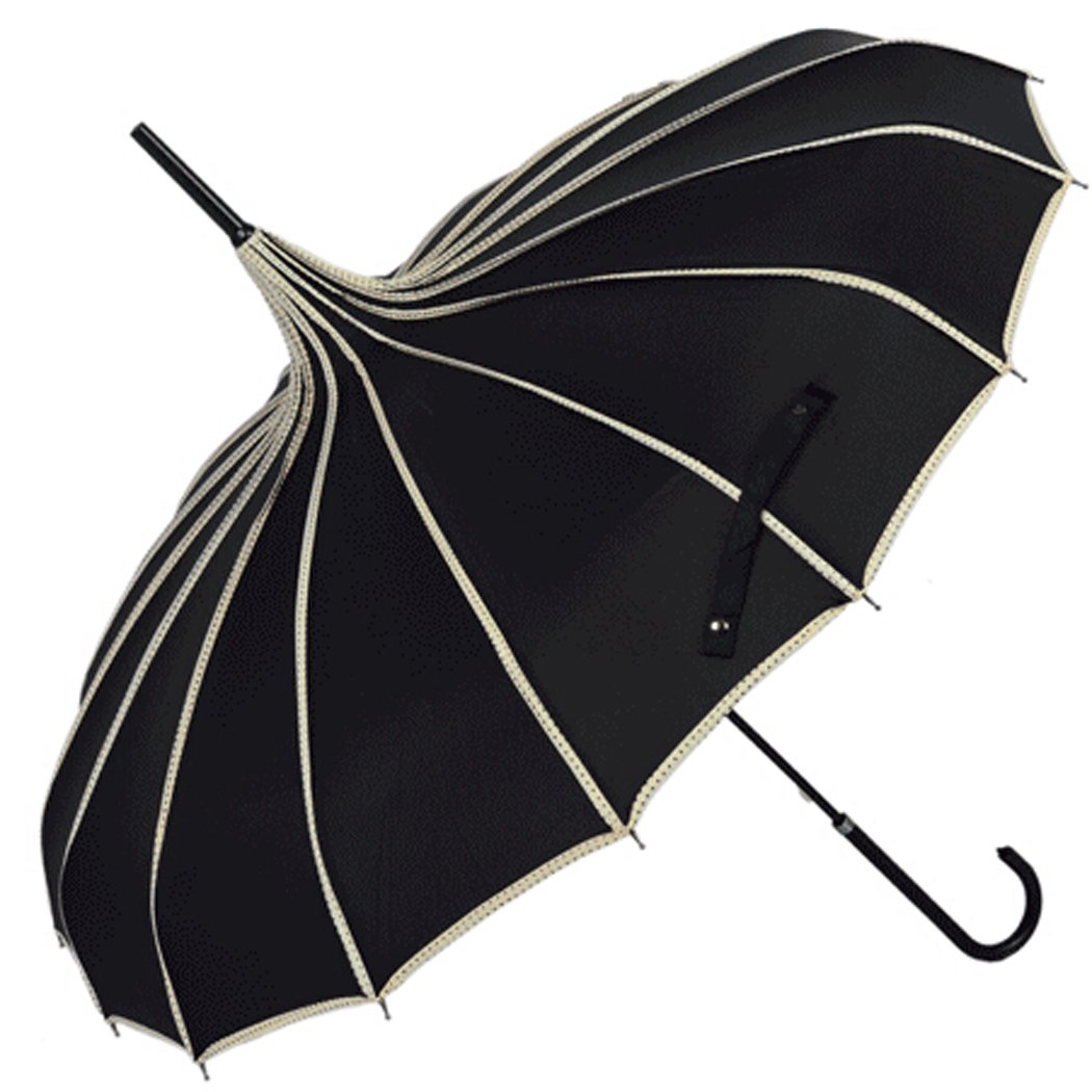 Distinctive pagoda peak shaped umbrella with lace trim, vintage but sublime sunshade