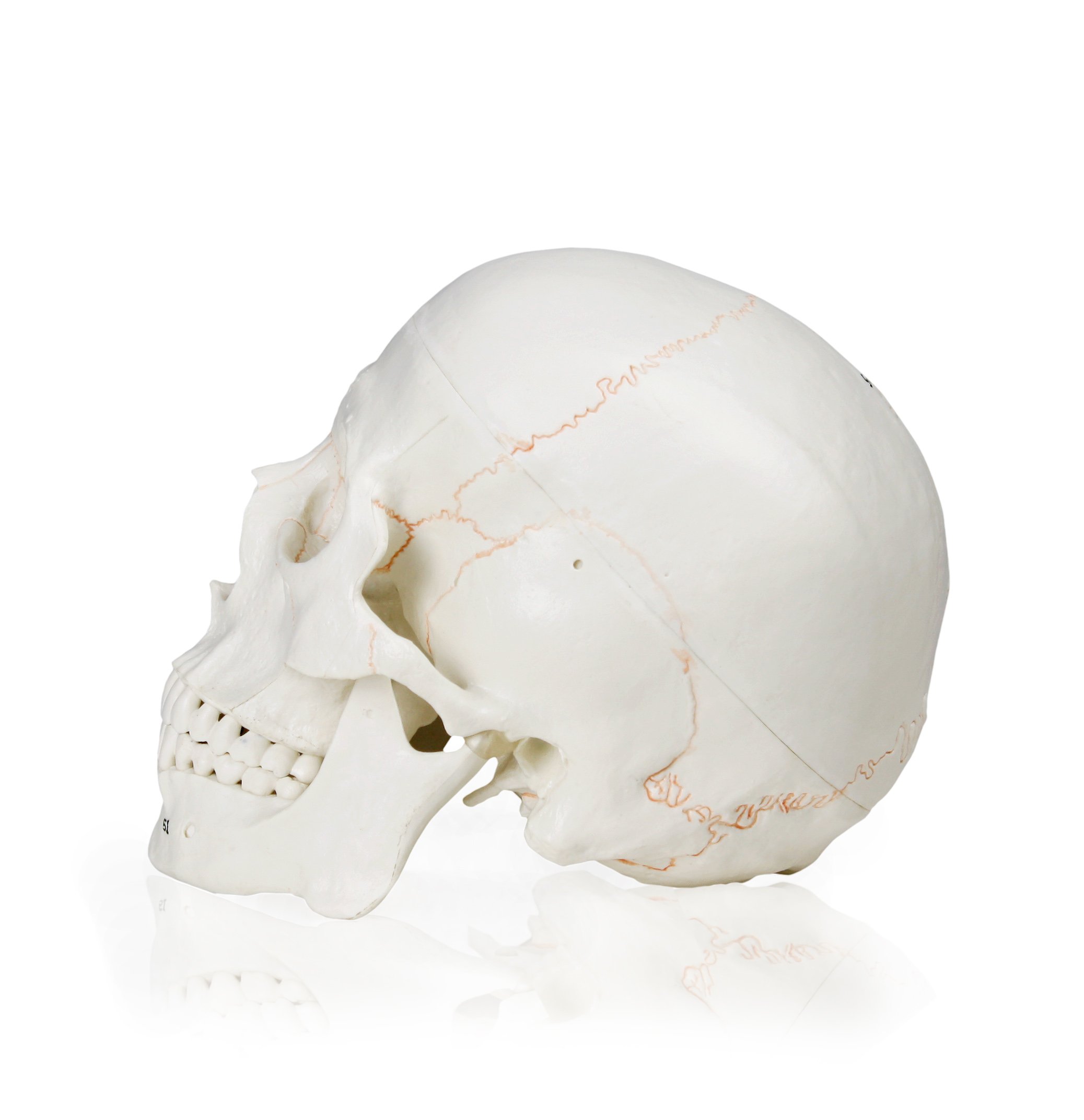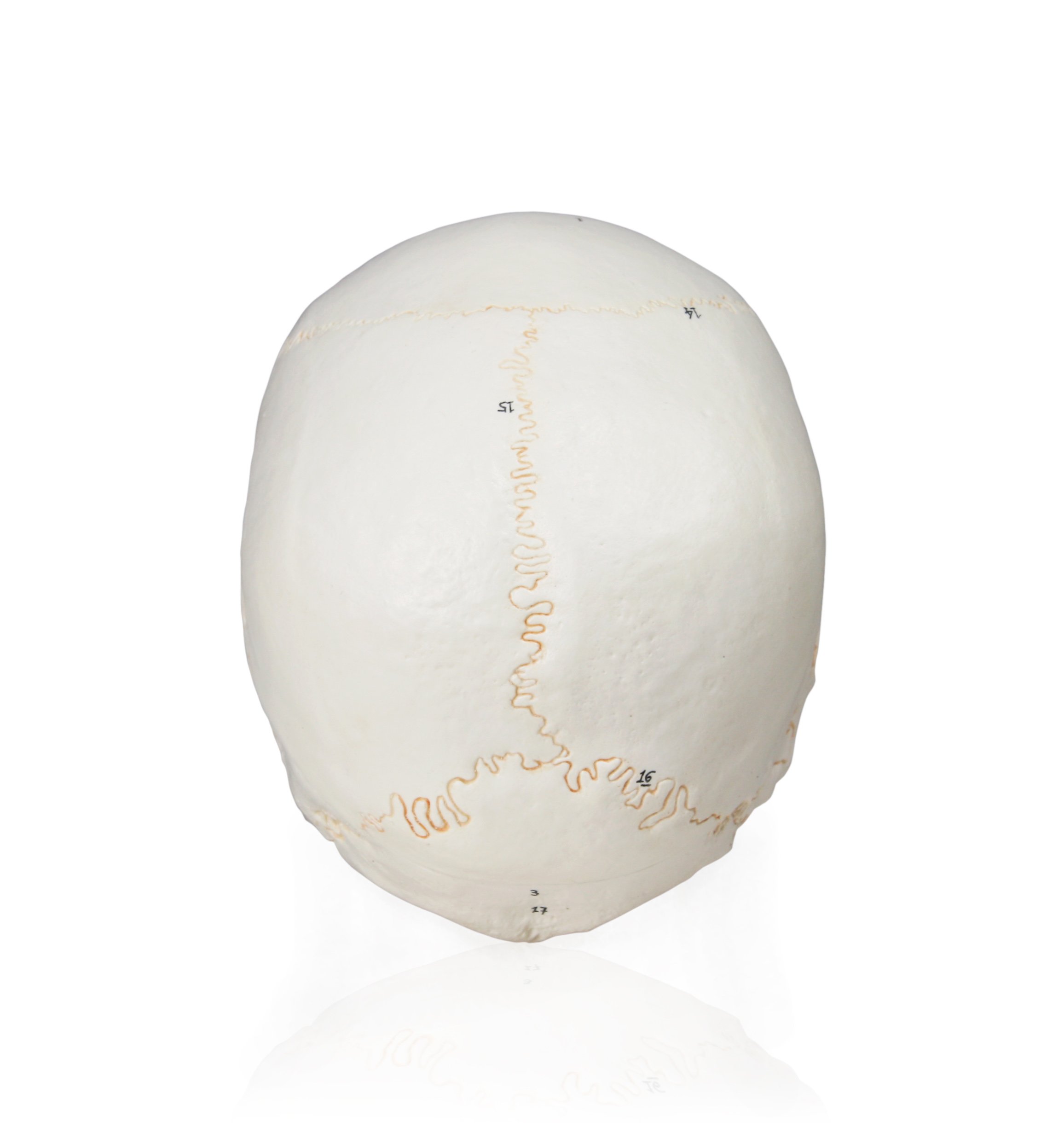 Skull sutures are high-lighted with yellow color for clarity of interlocking bony plates
